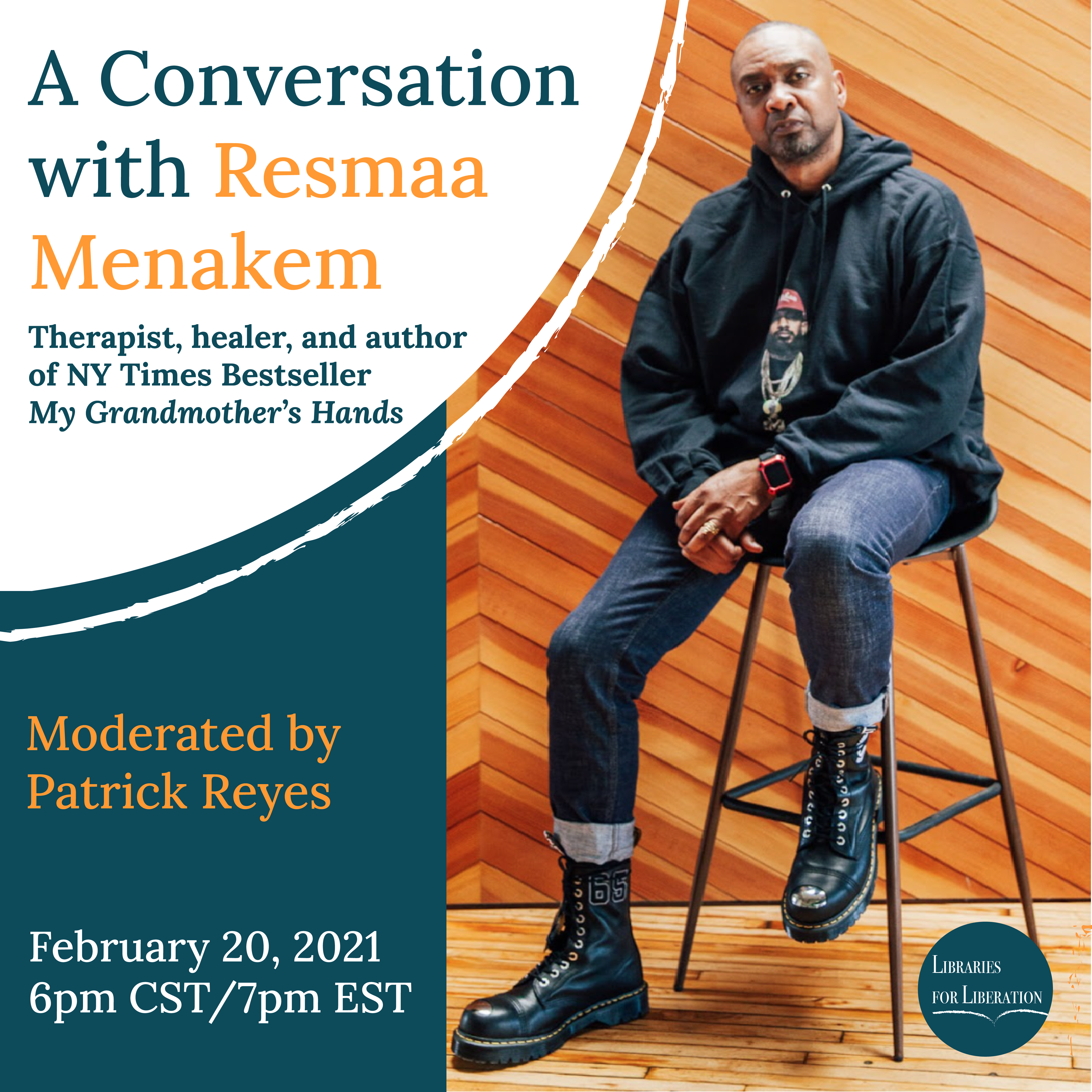 Libraries for Liberation was honored to partner with Resmaa Menakem for this virtual discussion about healing racialized trauma and his book My Grandmother’s Hands, moderated Dr. Patrick Reyes.